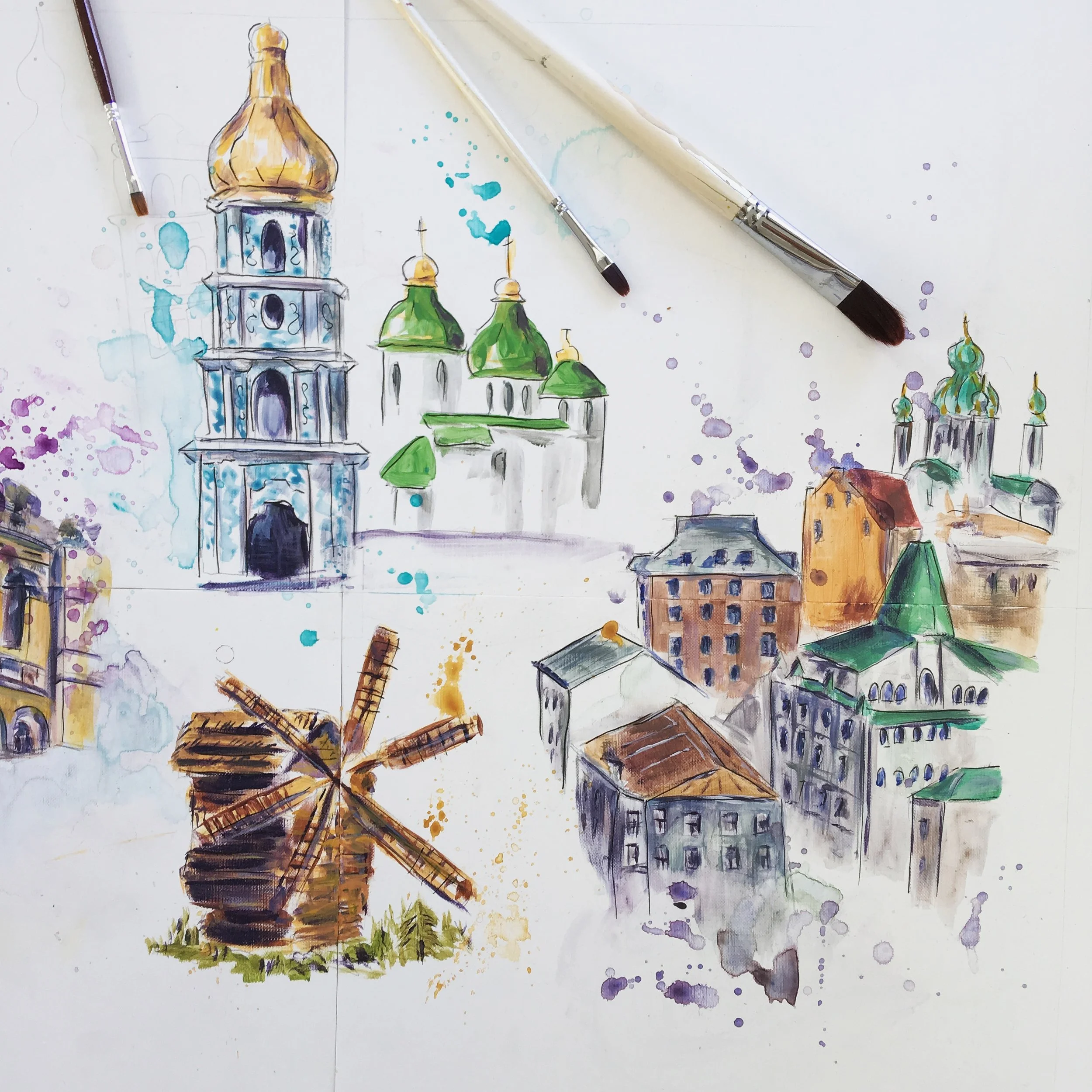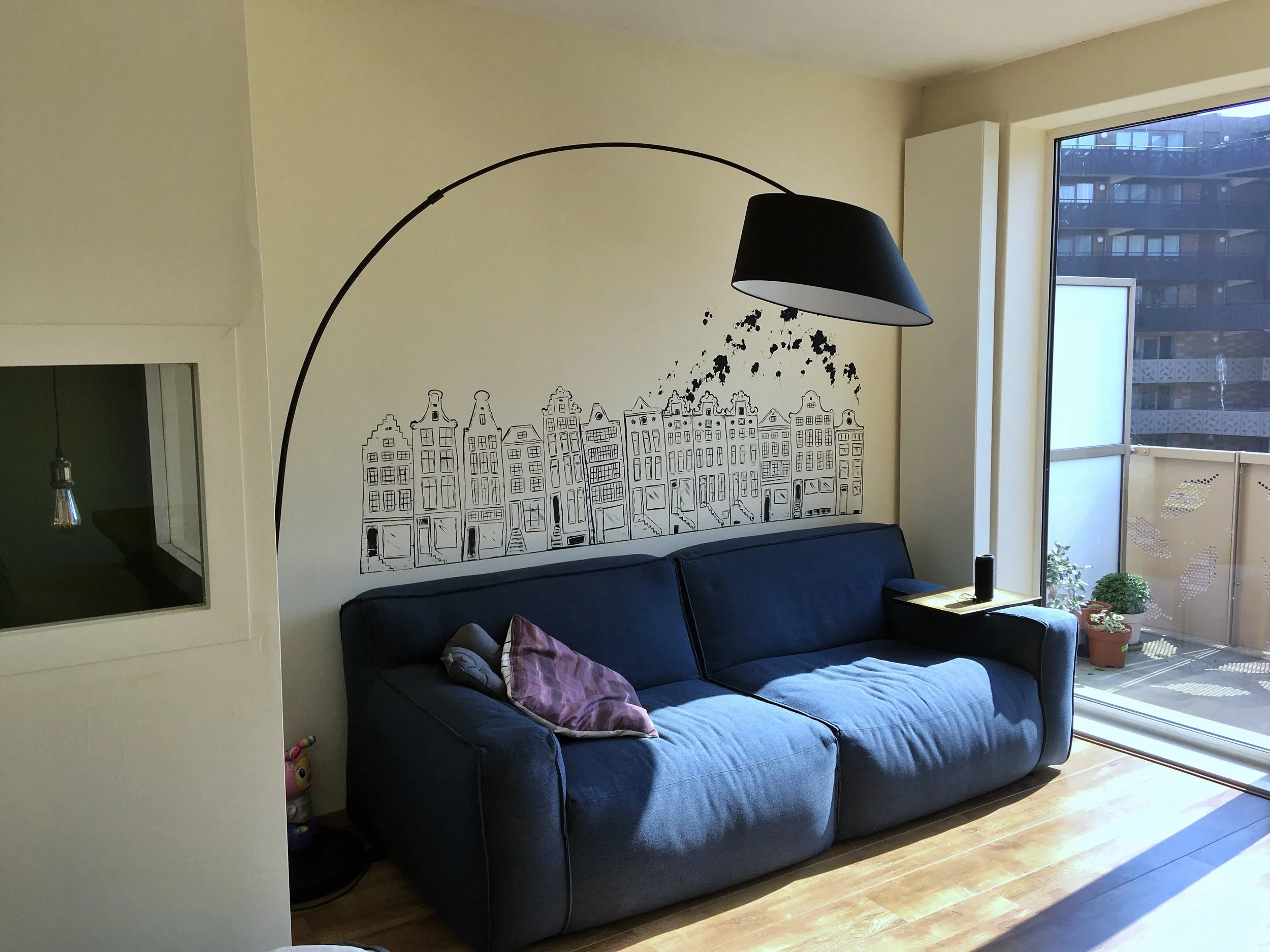 A private commission to paint Amsterdam houses in a minimalistic Scandinavian style. We decided not to use colour since the flat has lots of colourful interior items, however I have applied my signature splatters on one side of the artwork.