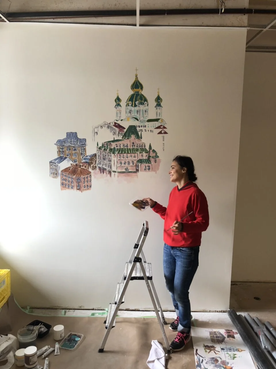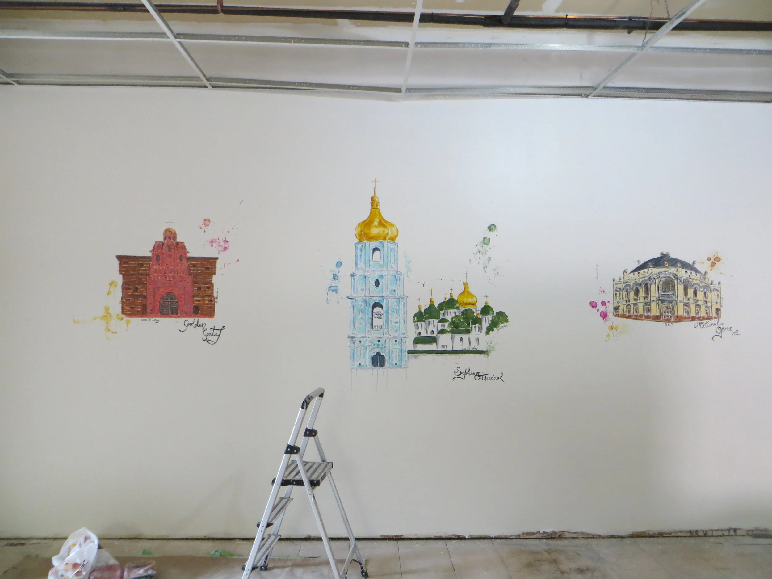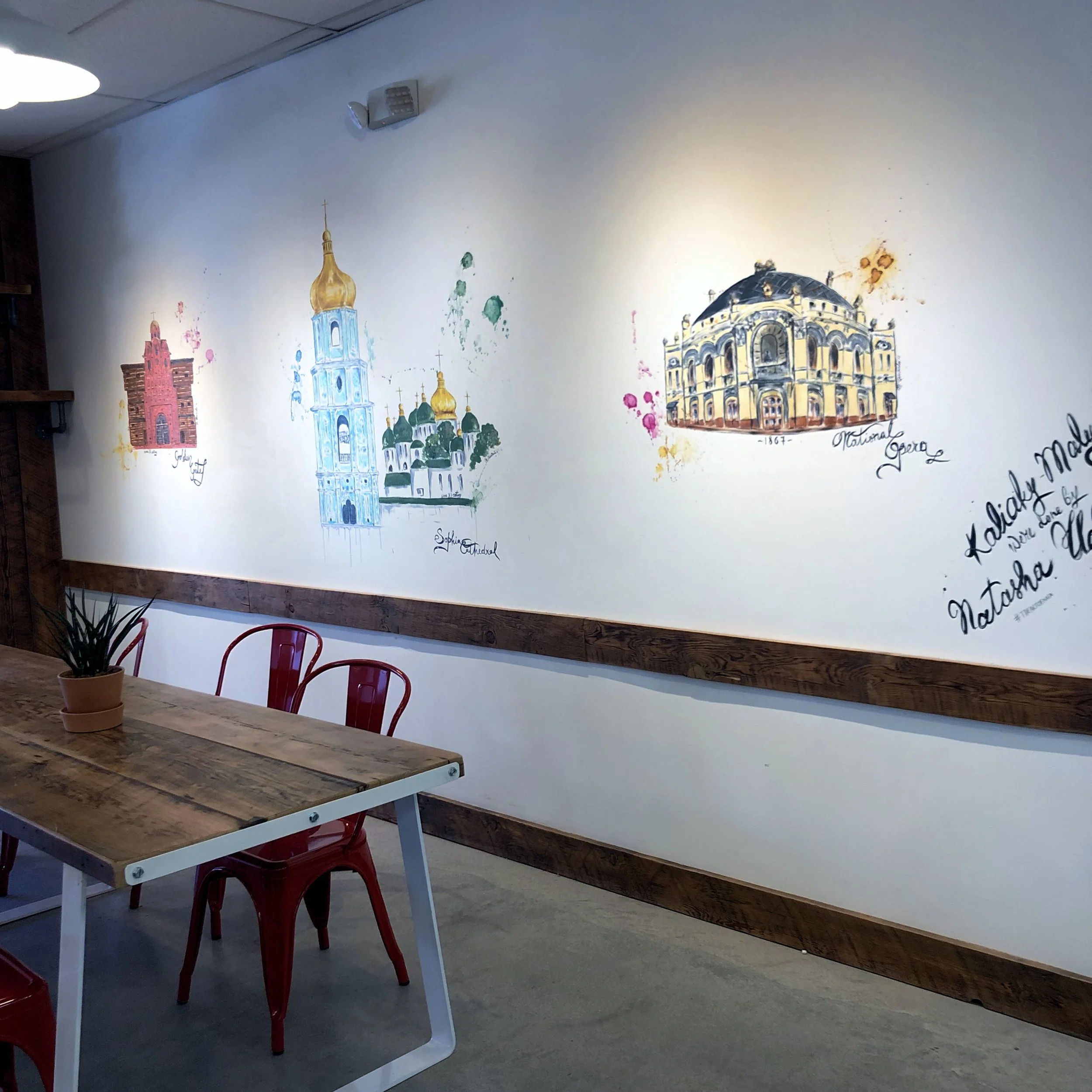 While I worked on this project, the restaurant wasn’t open yet and it was undergoing construction. Therefore the space was half-shaded and the photos turned out of a pretty poor quality. However, after the opening in 2019, the lovely owners sent me more photos of the paintings in situ - see them below.